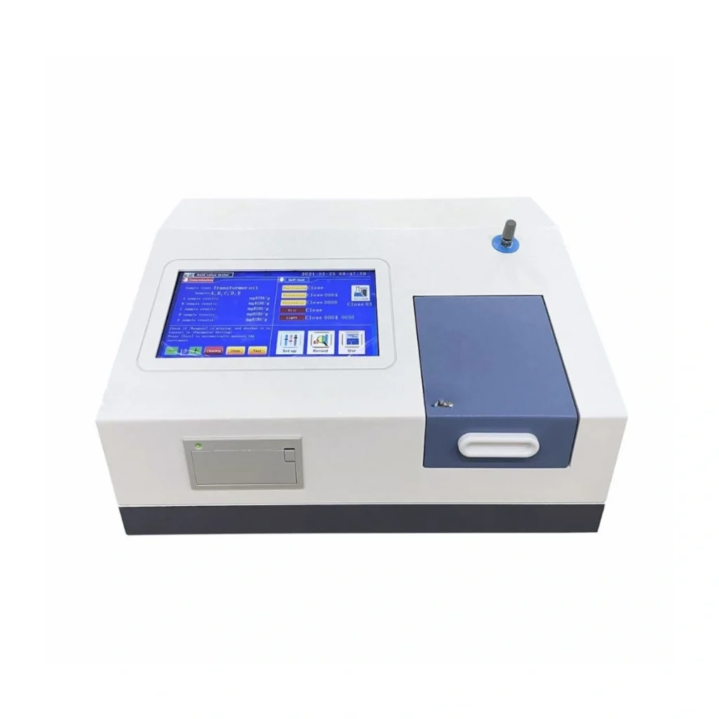 Measures the amount of acidic components in oil, expressed as mg KOH/g, indicating oxidation and aging level.